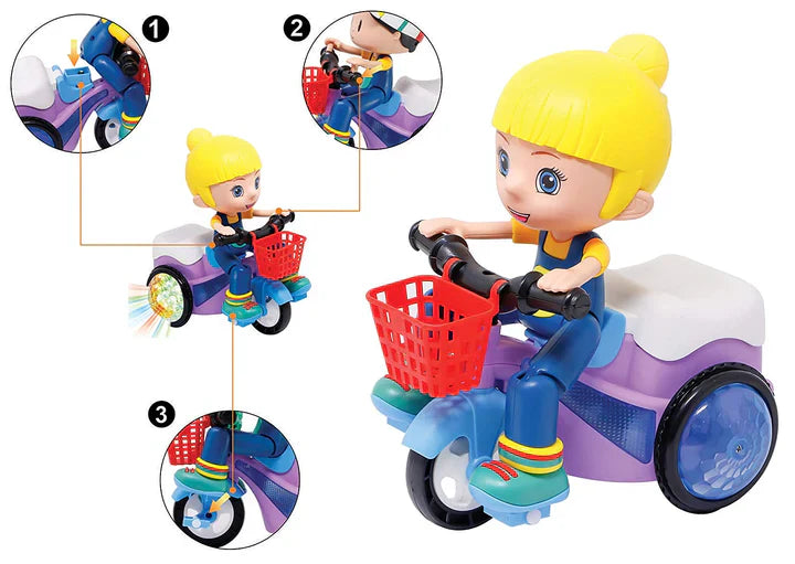 Give your child an exciting and interactive playtime experience with the Stunt Bicycle Toy with Lights & Music. Designed for endless fun, this 360° rotating stunt bike toy features vibrant lights, engaging music, and dynamic movements that captivate kids’ attention.